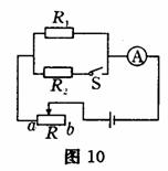 如图10所示,变阻器R为“40Ω 3A”,R1=20Ω,当S断开,