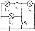 C.S1断开,S2闭合,L1﹑L3串联