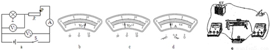 (2)小红连接电路时只用了图a中的V1,没有使用V2,连接的实物图如图e所示.闭合开关后,移动滑动变阻器的滑片,发现小灯炮______;经检查,是由于一根导线连接错误.请你在实物图中连接错误的导线上打“×”并补画出正确的连线.