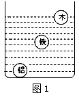 体积相同的木球、铝球、铁球,在水中静止时情形如图1所示(铝球沉底),下列说法正确的是(已知