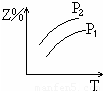 反应X (气) + 3Y (气)2Z (气) + 热量,在不同温度,不同压强()下达到平衡时,混合气体中Z的百分含量随温度变化的曲线应为( )