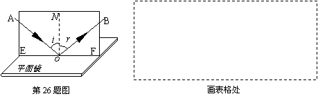 (1)让一细光束沿平面E射到镜面O点,在平面E上可看到入射光线AO,若将纸板F向前或向后折,在纸板F上不能看到反射光线,这说明反射光线与入射光线_______________同一平面内。(2)小明还想探究反射角和入射角的关系。具体做法是改变入射光线的方向,观察反射光线的方向是否改变,用量角器测量入射角和反射角,把测量结果记录在表格中,请你设计一个实验表格,要求做三次实验。