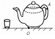 ⑴如图所示,一把茶壶放在水平桌面上,请画出茶壶所受的重力G的示意图。⑵如图所示的茶壶在倒茶时相当于一个杠杆,现以O为支点,在A点处提壶耳向杯中倒水,请画出作用在A点的最小的动力F 及其对应的力臂l。