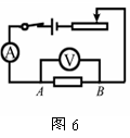 小刚同学用图6所示的电路研究电流跟电阻的关系。在实验过程中,当A、B两点间的电阻由5Ω更换为l0Ω后,他下一步的操作是