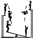 示例:男演员跳下弹起女演员时跳板会发生什么形变?