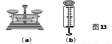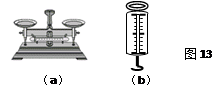 在“测定物质的密度”实验中,测量不规则铜块质量的器材应选用图13中的 (1) (选填“a”或“b”)。为完成该实验还必须要用的仪器是 (2) 。测定铜块密度的实验原理是 (3) 。 实验中采用多次测量的目的是 (4) 。