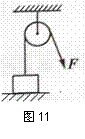 如图11所示,重为500N边长为0.1m的正方体物块放在水平地面上,工人通过定滑轮用200N的力未提起它,此时,物块所受合力为 N,工人再次用600N的力将物体匀速提升4m,在此过程中有用功是 J;该机械的效率为 。