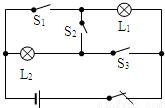 如图所示的电路中,只要灯L1发光,应只闭合开关 ▲ ;要使灯L1、L2串联,应闭合开关 ▲ ,断开开关 ▲ ;要使灯L1、L2并联,应闭合开关 ▲ ,断开开关 ▲ ;若闭合开关 ▲ ,就会造成整体短路.![]()