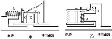 如图所示,新建的居民住宅大多安装了自动空气开关,当电路由于电流过大时,电磁铁的磁性将变 (选填:“强”或“弱”),吸引衔铁的力变大,使衔铁转动,闸刀在弹力作用下自动开启,切断电路,起到保险作用,其原理应是如图中的 (选填:甲或乙)图.