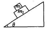 如图所示,两长方体木块的质量分别为m1和m2,叠放在倾角为q的斜面上,已知m1与m2间,m2与斜面间的动摩擦因数分别为m1和m2,它们从静止开始保持相对静止地一起沿斜面加速下滑,在这一过程中,m1和m2之间的摩擦力为( )