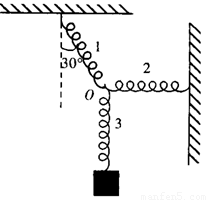 直方向的夹角为30°,弹簧2水平且右端固定在竖直墙壁上,弹簧3的另一端悬挂质量