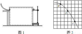 (2)某同学根据实验结果在坐标纸上描出了小球水平抛出后的一段运动轨迹,图2中水平方向与竖直方向每小格的长度均代表0.10m,小球在运动过程中的几个位置如图中的a、b、c所示,则小球从a运动到b所用的时间为t=