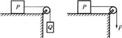 如图所示,物体P置于水平面上,用轻细线跨过质量不计的光滑定滑轮连接一个重力G=10N的重物,物体P向右运动的加速度为a1;若细线下端不挂重物,而用F=10N的力竖直向下拉细线下端,这时物体P的加速度为a2,则( ).【2】