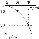 摘要:16.某同学在做平抛运动实验得到物体的运动轨迹. a.b.c三点的位置在运动轨迹上己标出.则 ① 小球从a到的时间b为 s, ② 小球平抛时的初速度 m/s, ③ 小球被抛出时的位置坐标X= cm,Y= cm
