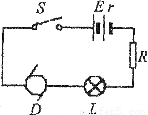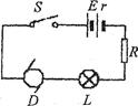 如图所示,已知电源电动势E=20V,内阻r=lΩ,当接入固定电阻R=4Ω时,电路中标有“3V, 6W”的灯泡L和内阻RD=0.5Ω的小型直流电动机D都恰能正常工作.试求:![]()