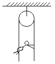 如图所示将一根绳子跨过定滑轮,一质量50kg的人将绳的一端系在身上,另一端握在手中,使他自己以2m/s2的加速度下降,若不计绳的质量及摩擦,则人拉绳子的力为________N.