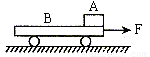 如图所示,质量为M=8kg的小车B放在光滑的水平面上,在小车右端加一个水平向右的恒力F=8N,当小车向右运动的速度达到v0=1.5m/s时,在小车右端轻轻的放上一个大小不计、质量m=2kg的小物块A,物块与小车间的动摩擦因数μ=0.2,小车足够长, g取10m/s2。求从A放上小车开始经过t=1.5s后A物体位移的大小。![]()