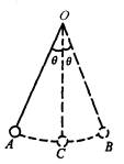 质量为m,电荷量为+q的小球,用一绝缘细线悬于O点.开始时它在A,B之间来回摆动,OA,OB与竖直方向OC的夹角均为θ[如图所示].[l]如果当它摆动到B点时突然施加一竖直向上的、大小为E=mg/q的匀强电场,则此时线中拉力T1=_______;[2]如果这一电场是在小球从A点摆到最低点C时突然加上去的,则当小球运动到B点时线中的拉力T2=_______.