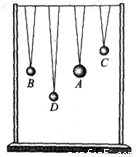 | A、B、C、D三摆振动的周期相同 | B、B、C、D三摆中振动周期最大的是B摆,最小的是D摆 | C、B、C、D三摆中振幅最大的是B摆,最小的是D摆 | D、B、C、D三摆中振幅最大的是D摆,最小的是B摆 |