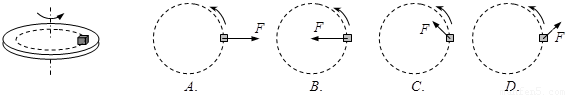 如图所示,一圆盘可绕一通过圆心O且垂直盘面的竖直轴转动。在圆盘上放置一木块,木块与圆盘一起作匀速圆周运动,则木块的受力情况是![]()