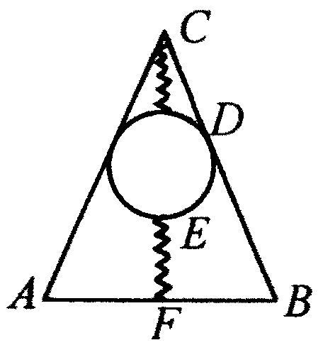 个.如图,重G=10N的光滑球与劲度系数为k=1000N/m的上、下两轻弹簧相连,并与AC、BC两光滑平板相接触,若弹簧CD被拉伸量、EF被压缩量均为x=0.5cm,则小球受力的个数为______个.