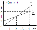 ? D.在t=4s时刻,甲、乙两物体速度不同,位移相同?