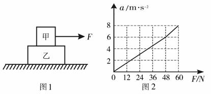 如图1所示,在光滑水平面上叠放着甲、乙两物体.现对甲施加水平向右的拉力F,通过传感器可测得甲的加速度a随拉力F变化的关系如图2所示.已知重力加速度g=10m/s2,通过分析图线可知( )