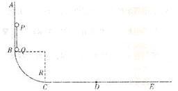 直平面内有轨道 ABCDE,其中 BC 是半径为 R 的四分之一圆弧轨道, AB(AB>R)是竖直轨道,CE 是水平轨道,CD>R.AB 与 BC 相切于 B 点,BC 与 CE 相切于 C 点, 轨道的 AD 段光滑,DE 段粗糙且足够长。 一根长为 R 的轻杆两端分别固定着两个质量均为 m 的相同小球 P、Q(视为质点),将轻杆锁 定在图示位置, 并使 Q 与 B 等高。 现解除锁定释放轻杆, 轻杆将沿轨道下滑, 重力加速度为 g。