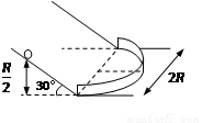 如图所示,倾角30°的斜面连接水平面,在水平面上安装半径为R的半圆竖直挡板,质量m的小球从斜面上高为R/2处静止释放,到达水平面恰能贴着挡板内侧运动。不计小球体积,不计摩擦和机械能损失。则小球沿挡板运动时对挡板的作用力是( ) ![]()