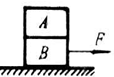 如图,AB叠放在水平桌面上,水平外力F=10N拉物体A时,AB都未动,则AB之间摩擦力f1=_______________;B与地面之间摩擦力f2=_______________。