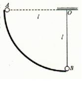 的光滑 1/4 圆弧轨道,在与 O 点等高位置由静止释放,A 球下滑到最低点与B 球相碰,若A球与B 球碰撞后立刻粘合在一起,求: