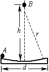 如图所示,水平地面上有一个圆弧形凹槽,凹槽的水平宽度为D.圆弧的半径为r,已知d<r.在凹槽最低点的正上方有一小球B,在凹槽的最高点处有一小球A,两球都可以看作质点,并且同时从静止开始释放,问B球与凹槽的距离h满足怎样的关系,两球会在凹槽的最低点处相遇.