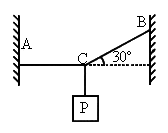 .如图所示,在一细绳C点系住一重物P,细绳两端A、B分别固定在两边墙上,使得AC保持水平,BC与水平方向成30°角,已知细绳最大只能承受200N的拉力,那么C点悬挂物体的重量最多为______,AC、BC绳中先断的是______.