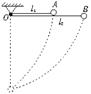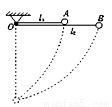 如图所示,一根长为l1的橡皮条和一根长为l2的绳子(l1<l2)悬于同一点,橡皮条的另一端系一A球,绳子的另一端系一B球,两球质量相等,现从悬线水平位置(绳拉直,橡皮条保持原长)将两球由静止释放,当两球摆至最低点时,橡皮条的长度与绳子长度相等,此时两球速度的大小为![]()