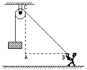 如图所示,人拉住跨过定滑轮细绳的一端,绳的另一端拴一个质量为10kg的重物,人拉绳缓慢地从A处移动到B处。求:人对绳的拉力做的功。已知A点在C点的正下方,A、B在同一水平面上,AC=4m,AB=3m,绳重及各种摩擦不计,g取
