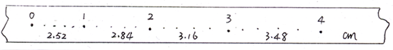 某同学利用打点计时器打出如图所示的一段纸带,测得相邻计数点之间的距离在纸带上已标出,已知交流电频率为50Hz,则纸带的运动是 ,判断依据是 。打纸带上“2”点时的瞬时速度是 ,纸带运动的加速度是 ,打纸带上“4”点时的瞬时速度是 。(结果保留三位有效数字)![]()