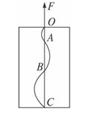 如图所示,一块涂有碳黑的玻璃板,质量为2 kg,在拉力F的作用下,由静止开始竖直向上做匀变速运动,一个装有水平振针的振动频率为5 Hz的固定电动音叉在玻璃板上画出了图示曲线,量得OA=1 cm,AB=3 cm,BC=5 cm.则拉力F的大小为(g=10 m/s2). ( )![]()