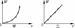 (2)甲、乙两位同学的实验操作均正确.甲同学根据实验数据作出了功和速度的关系图线,即W-v图,如图甲,并由此图线得出“功与速度的平方一定成正比”的结论.乙同学根据实验数据作出了功与速度平方的关系图线,即W-v2图,如图乙,并由此也得出“功与速度的平方一定成正比”的结论.关于甲、乙两位同学的分析,你的评价是________