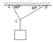 摘要:20.用轻绳AC和BC悬挂一重物.绳AC和BC与水平天花板的夹角分别为600和300.如图所示.绳AC能承受的最大拉力为100N.绳BC能承受的最大拉力为60N.为了不使轻绳被拉断.所悬重物的重力不能超过多少? 江苏省南通中学2005~2006学年第一学期期中考试
