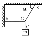 如图所示,AO、BO、CO为三根轻绳,OB与水平天花板夹角为60°,物体质量m=2kg.求AO、BO绳所受拉力.