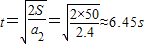 静止在水平地面上的木箱,质量为50kg,若用F=400N的水平恒力推它,可以在5s内使它移动s=50m.若用大小仍为400N、而方向与水平方向夹角为37°斜向上的拉力拉木箱从静止开始运动,使木箱能够到达50m远处,则拉力的作用时间最少是多少?(cos37°=0.8)