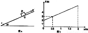 如图a所示,有一个足够长的光滑斜面,倾角θ为30°,质量为0.8kg的物体置于O处.物体受到一个沿斜面向上的拉力F作用下由静止开始运动,F与x的关系如图b所示,x为物体相对于O点的位移,x轴正方向沿斜面向下,如图a所示,则: