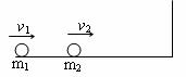 如图所示,质量分别为m1和m2的两个小球在光滑水平面上分别以速度v1、v2同向运动,并发生对心碰撞,碰后m2被右侧墙壁原速率弹回,又与m1碰撞,再一次碰撞后两球都静止.求![]()