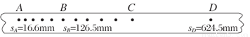 某同学用打点计时器测量做匀加速直线运动的物体的加速度,电源频率f=50 Hz,在纸带上打出的点中,选出零点,每隔4个点取1个计数点,因保存不当,纸带被污染,如图所示,A、B、C、D是依次排列的4个计数点,仅能读出其中3个计数点到零点的距离:sA=16.6 mm,sB=126.5 mm,sD=624.5 mm。