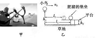 (2)如果小鸟弹出后,先掉到平台上(此时小鸟距抛出点的水平距离为l2),接触平台瞬间竖直速度变为零,水平速度不变,小鸟在平台上滑行一段距离后,若要打中肥猪的堡垒,小鸟和平台间的动摩擦因数μ与小鸟弹出时的初速度v0应满足什么关系(用题中所给的符号h1、l1、h2、l2、g表示)?