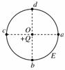 在场强为E的匀强电场中,取O点为圆心,r为半径作一圆周,在O点固定一电荷量为+Q的点电荷,a、b、c、d为相互垂直的两条直线和圆周的交点.当把一试探电荷+q放在d点恰好平衡(如右图所示,不计重力)![]()