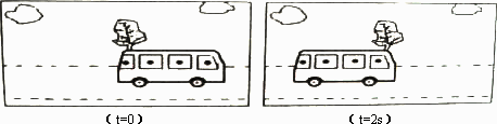 在平直公路上行驶着的公共汽车,用固定于路旁的照相机连续两次拍摄,得到清晰的照片如图8所示.对照片进行分析,知道如下结果.![]()