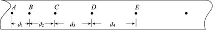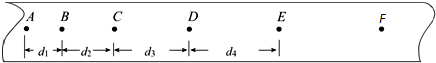 在“研究自由落体运动”的实验中,如果打点计时器打出的纸带前面的几个点不清晰,只得到如图所示从A点至E点这一段点迹的纸带。在纸带上测出AB、BC、CD、DE之间的距离分别是d1、d2、d3、d4。已知打点计时器打点的周期为T,重锤质量为m。