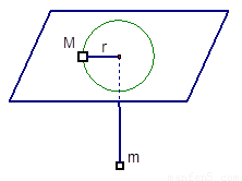 细绳一端系着质量M=8kg的物体,静止在水平面,另一端通过光滑小孔吊着质量m=2kg的物体,M的中点与圆孔的距离r=0.2m,已知M与水平面间的动摩擦因数为0.2,现使此物体M随转台绕中心轴转动,问转台角速度ω在什么范围m会处于静止状态?(g="10" m/s2)![]()