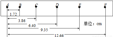 如图是研究匀变速直线运动时打点计时器打出的纸带,图中A、B、C、D、E、F是按时间顺序先后打出的记数点(电源频率为50Hz,每两个计数点间有4个点未画出),用刻度尺量出A点到各点之间的距离如图所示,那么小车的加速度大小是
